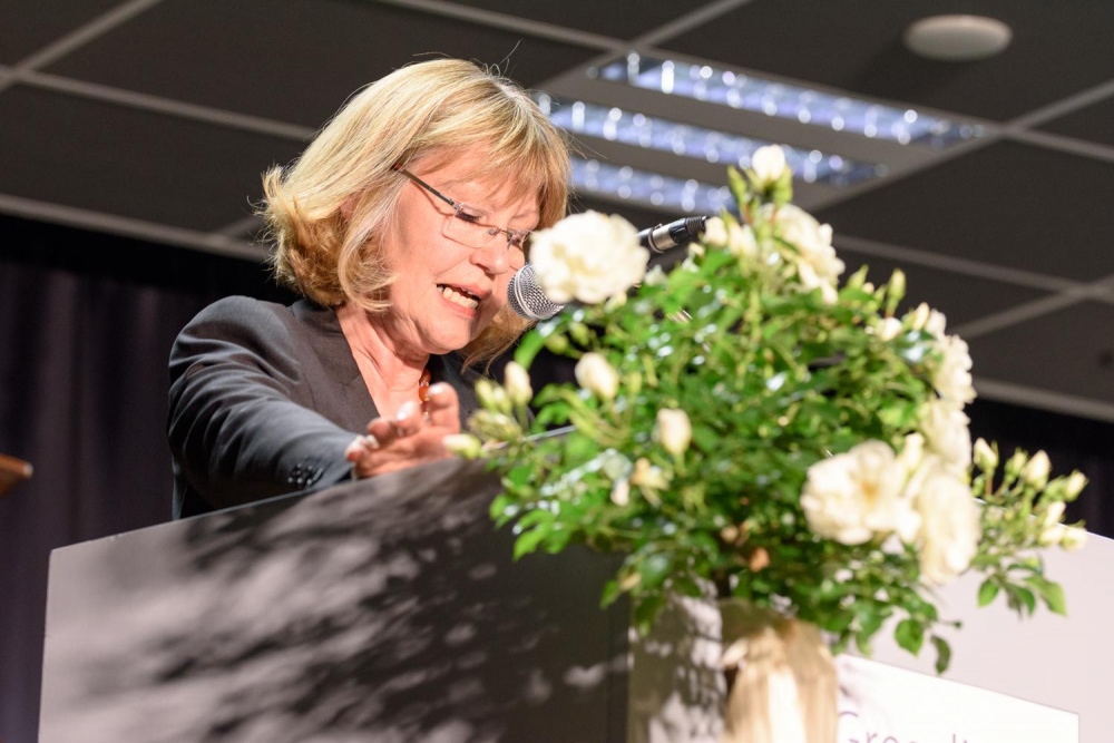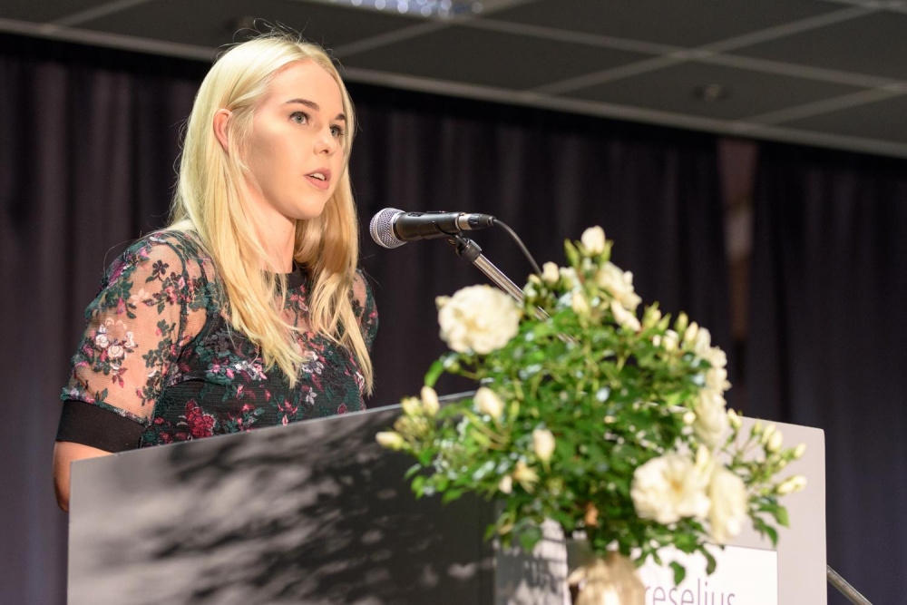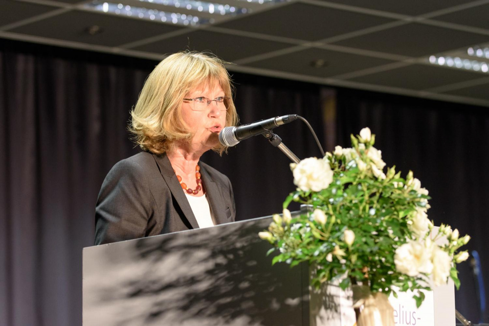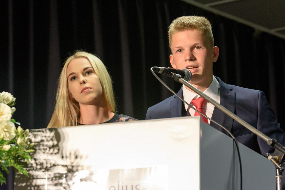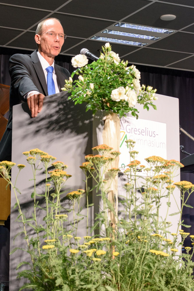 Nach den Grußworten folgte die Ansprache von Dr. Christoph Enz für die Elternschaft und die Ansprache der Abiturientia von Gesa Staas und Josh Nietiet. Nach einer weiteren Einlage der Greselius-BigBand nahm die Schulleiterin Barbara Bolz in ihrer abschließenden Ansprache das Motto des Abiturjahrgangs 2018 wieder auf und empfahl der Abiturientia: "Bleibt fröhlich und fair im Spiel!".