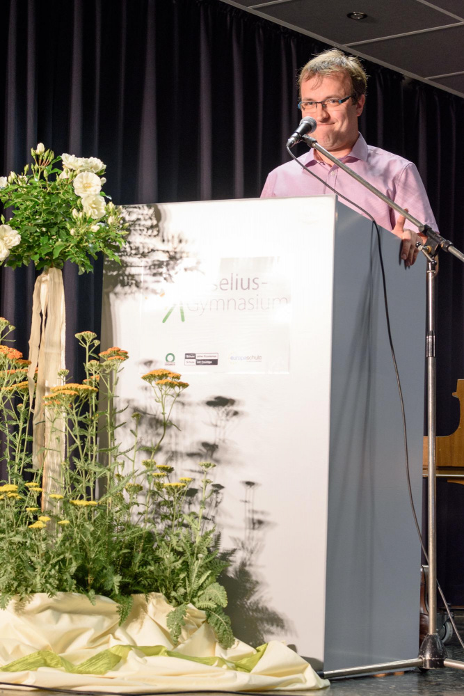 Am 21. Juni 2018 ist der Abiturjahrgang 2018 in der Aula des Greselius-Gymnasiums feierlich verabschiedet worden. Nach einer gelungenen musikalischen Darbietung der Greselius-BigBand unter der Leitung von Kai Lünnemann begrüßte der stellvertretende Schulleiter Klaus Wahlbrink in der voll besetzten Aula die Abiturientinnen und Abiturienten, deren Eltern und Angehörige, das anwesende Kollegium sowie Bürgermeister Heiner Pahlmann, für den Landkreis als Schulträger Landrat Dr. Michael Lübbersmann, für die Kirchen Superintendent Hans Hentschel und Pfarrer Tobias Kotte und für den Verein der Freunde und Förderer des Greselius-Gymnasiums Markus Weisbrich.