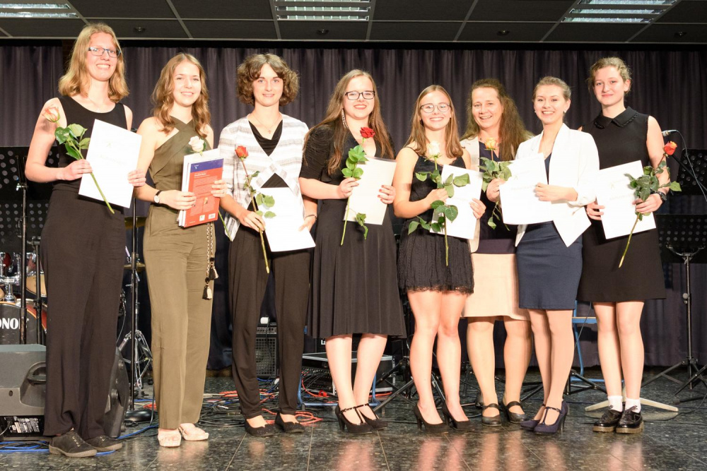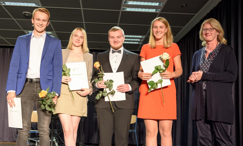 Anschließend bekamen 81 Abiturientinnen und Abiturienten von ihren Tutorinnen und Turoren das Abiturzeugnis feierlich überreicht, darunter 16 Zeugnisse mit der Abiturnote 2,0 oder besser.