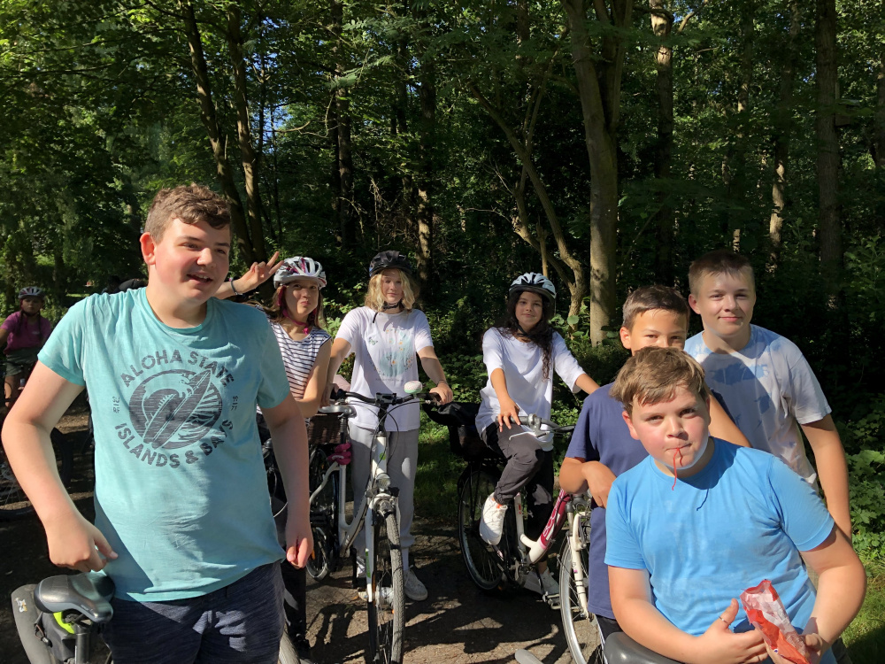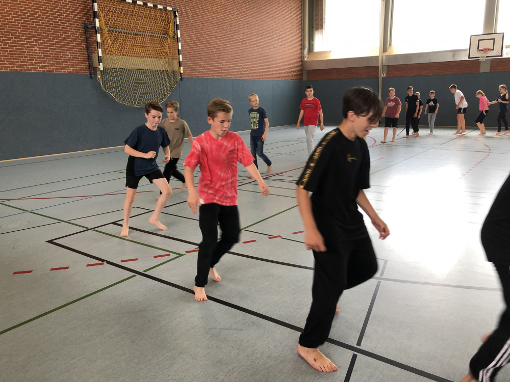 Handlungsorientiert. Außer Haus. In Bewegung. In den letzten Junitagen hatten unsere Schüler:innen einen anderen Zugriff auf Themen als sonst üblich. Es war Projektwoche. In jedem Jahrgang stand sie unter einem eigenen Motto. Dies hieß im Jg. 5 „Fit für den Schulalltag: Ernährung, Bewegung, Entspannung, Mobilität“, im Jg. 6 „Gewaltprävention und Gemeinschaft“ und im Jg.7 „Vielfalt und gesundes Leben“. Die Neuntklässler beschäftigten sich unter dem Motto „Leben in Balance“ ebenfalls mit dem großen Bereich der „Sucht“ und die Zehntklässler mit gesellschaftsrelevanten Aspekten der digitalen Welt. Während unsere ältesten Schüler:innen durch Gespräche und Vorträge von Vertreter:innen unterschiedlicher beruflicher Disziplinen mehr Klarheit über ihren zukünftigen Weg in Beruf oder Studium zu gewinnen versuchten, waren die Elftklässler:innen gefordert, unter dem Leitgedanken der Nachhaltigkeit selbst (auch körperlich) aktiv zu werden. Sie beseitigten beispielsweise Kiefern und Birken im Moorgebiet der Hasemann-Stiftung und entwickelten einen Nachhaltigkeitsführer durch die Stadt. Der Jahrgang 8 befand sich auf Klassenfahrt in Dortmund. Die folgenden Bilder geben einen Eindruck von der bunten Projektwoche.