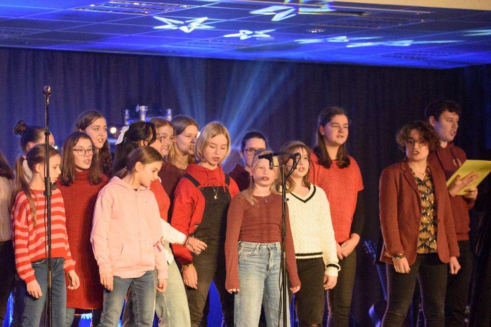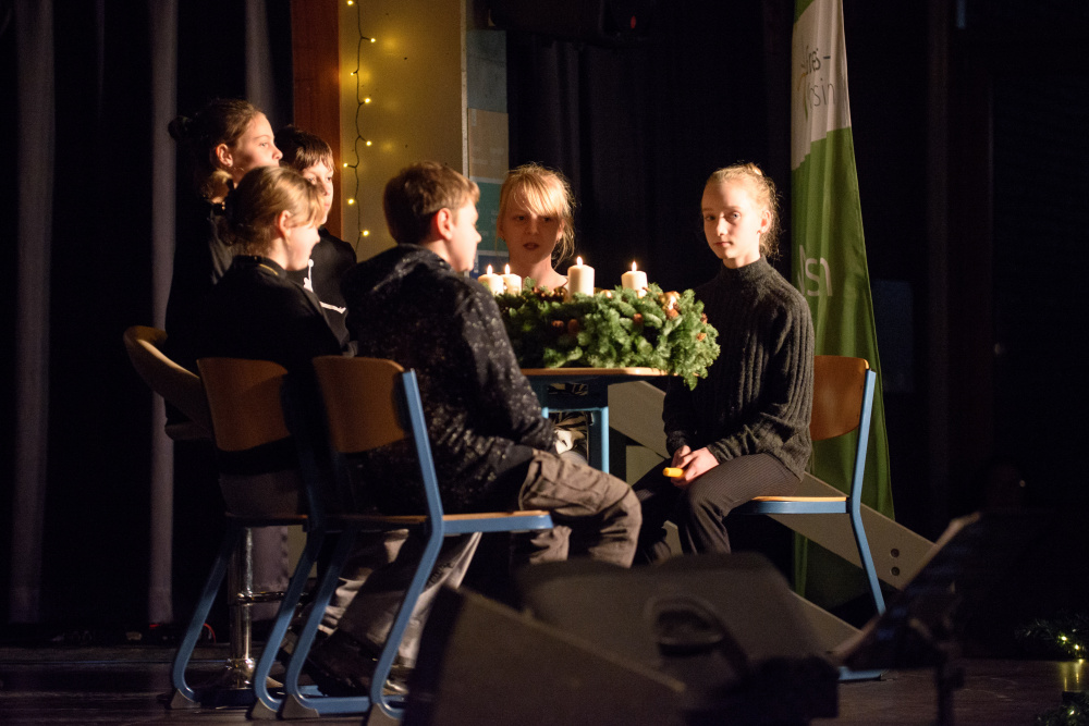 Die musikalischen Beiträge wurden ergänzt durch einige Sprechbeiträge. Dafür sorgten die Mitglieder der Theatergruppe „Die Juniors“ und der Unterstufe. Sie unterstrichen u.a. die Bedeutung der Hoffnung für das Leben. Mit diesem Gedanken klang der Konzertabend auch aus. „Merry X-Mas (War is Over)“ von John Lennon und Yoko Ono wurde abschließend in dieser Hoffnung von allen Anwesenden gesungen. (ric)