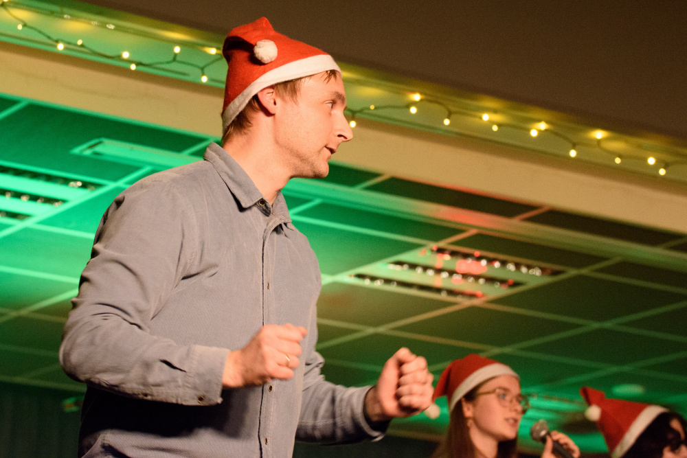 Zum Auftakt stimmte unser Schulchor Chorios unter der Leitung von Maye Hinrichsen, stimmlich unterstützt von einigen Lehrkräften, die Anwesenden ein, bevor zwei 5. Klassen mit Benjamin Schmidt-Rhaesa Weihnachtslieder schmetterten. Die „Jingle Bells“ durften an dem Abend natürlich nicht fehlen. Auch die Klasse 9b zeigte mit „Mary, did you know“ und „This is XMas“ eindrucksvoll, welche gesanglichen Talente sie in ihren Reihen hat.
