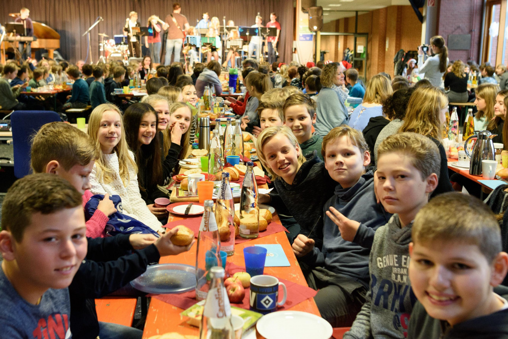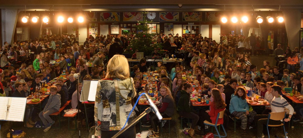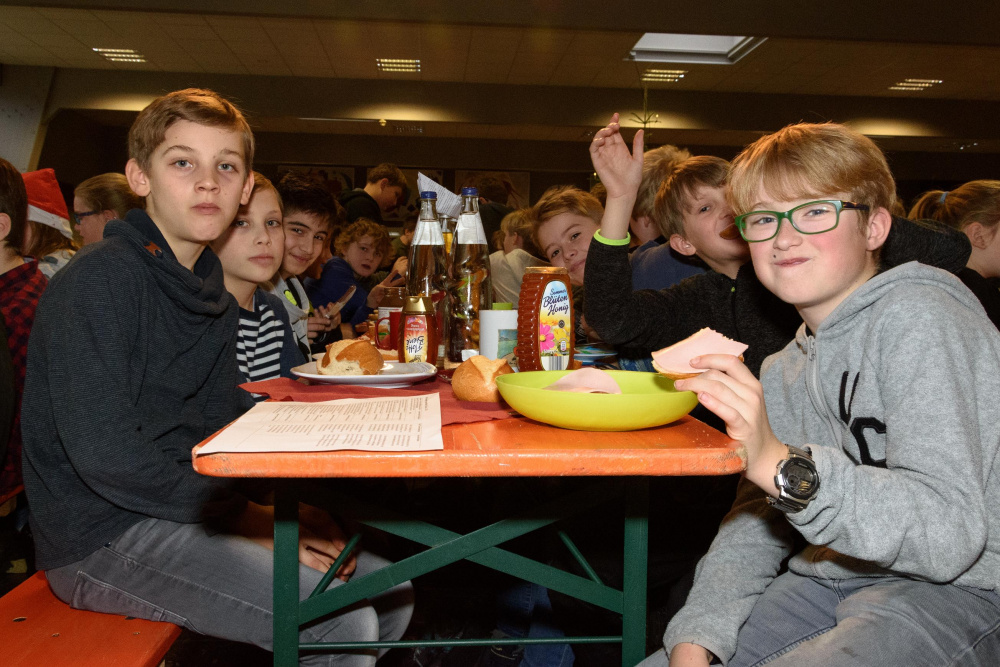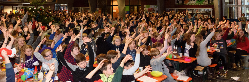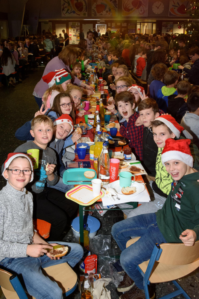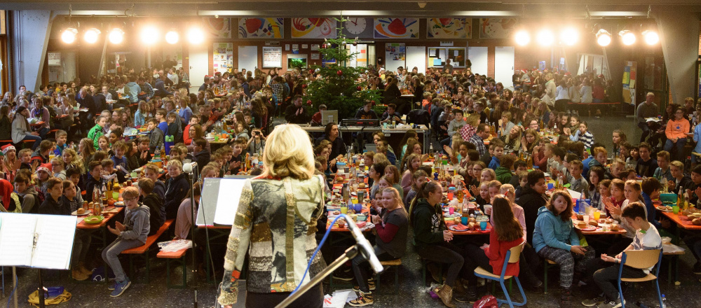 Mit einem großen Weihnachtsfrühstück beendete das Greselius-Gymnasium Bramsche in diesem Jahr den Unterricht: Alle Schülerinnen und Schüler der Jahrgänge 5-10 versammelten sich am letzten Schultag vor den Weihnachtsferien (21.12.2017) in der Aula, um gemeinsam zu frühstücken. Für weihnachtliche Stimmung sorgte u.a. unsere "Big Band" unter der Leitung von Herrn Lünnemann. Auch die Weihnachtsgeschichte (diesmal vorgetragen in mehreren Sprachen) durfte nicht fehlen.