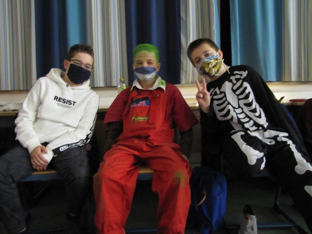 Gemeinschaftserlebnisse ermöglichen trotz Corona-Gefahr: Vor dieser Herausforderung standen die Patinnen und Paten des Jg. 5 Anfang November. Eigentlich laden sie in dieser Zeit unsere Jüngsten zu einem schaurig-gemütlichen Gruselleseabend mit „Horroraktionen" ein. Vieles davon war jetzt aber nicht möglich. Einiges machten sie dennoch möglich: