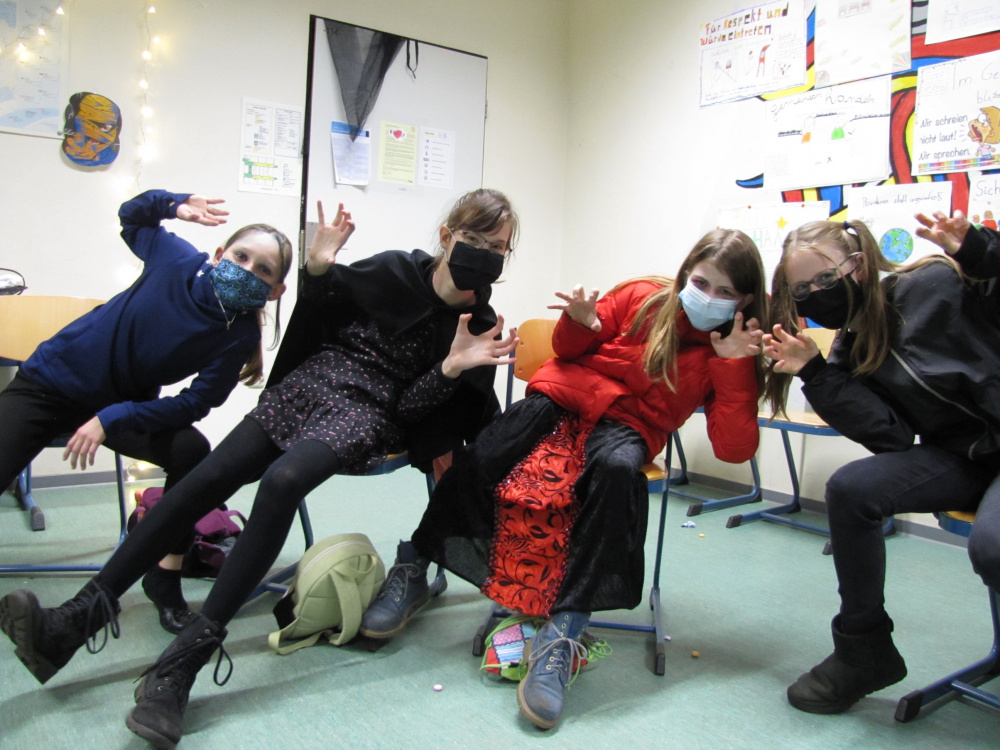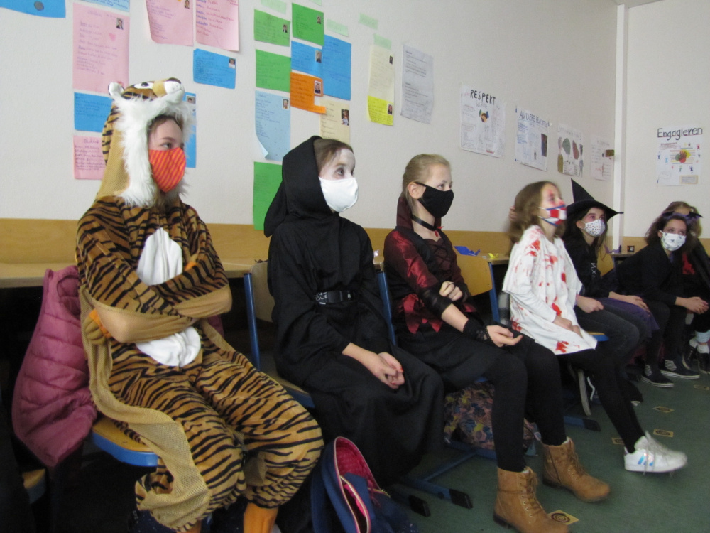 Die Patinnen und Paten tüftelten unter der Leitung von Melanie Gehricke und Kathrin Ostholthoff ein genaues Hygiene-Konzept für den Abend aus und luden schließlich jede Klasse einzeln ein, zum Spielen, Vorlesen, einer Verkleidungsmodenschau und einer Gruselwanderung. So blieben die Lerngruppen wie am Schulvormittag unter sich -und konnten trotzdem mal etwas anderes als Unterricht miteinander erleben.