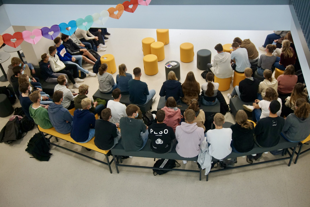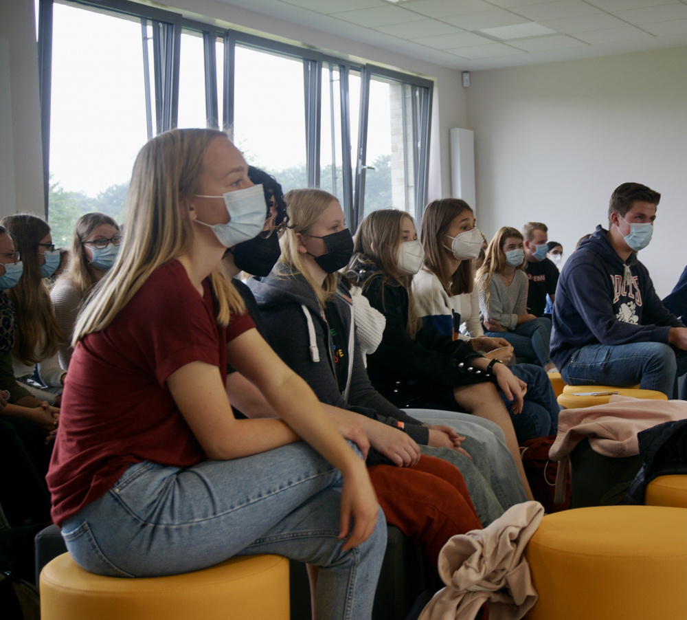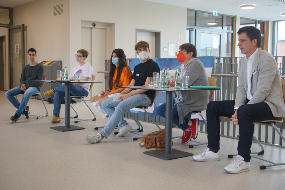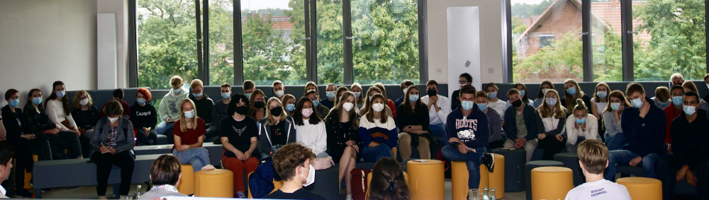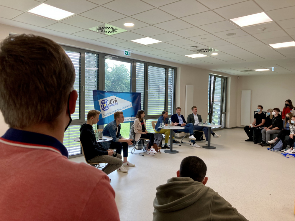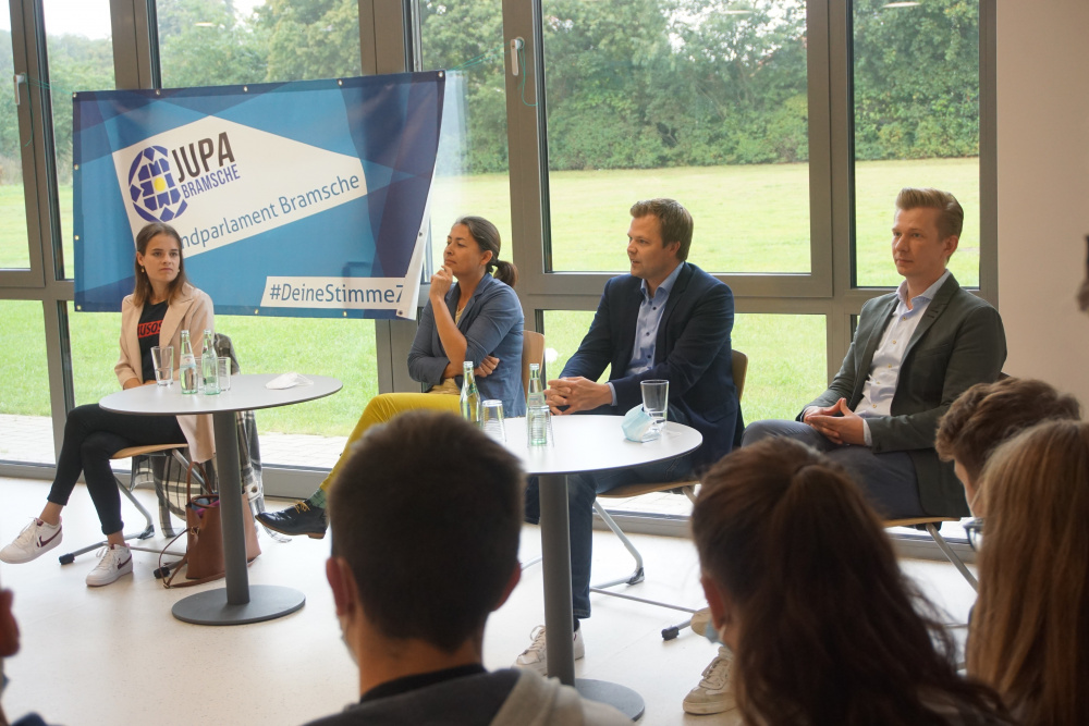 Erneut fanden zahlreiche Gäste aus der Politik im Vorfeld der Bundestagswahlen den Weg zu uns ins GGB. Ziel der beiden politischen Podien am 17. 9. war es, den Erstwähler/innen „jugendgerechte Informationen zur Bundestagswahl“ zu vermitteln, so Stadtjugendpflegerin Stefanie Uhlenkamp, die mit den Mitgliedern des Bramscher Jugendparlaments (JUPA) die Veranstaltung organisiert hatte. Unter der Moderation von Matthis Waldkötter (Jg.13) und Arne Wegner vom JUPA stellten sich die Landesvorsitzenden der Jusos und der Jungen Union, Ronja Laemmerhirt und Christian Fühner, Feliz Polat (MdB, Bündnis 90/Die Grünen) und Matthias Seestern-Pauly (MdB, FDP) in einem Podium den kritischen Fragen der Oberstufenschüler/innen, während Nemir Ali (FDP Osnabrück), Caro Otte (Grüne-Jugend), Anke Hennig (SPD-Bundestagskandidatin) und Dr. Andre´Berghegger (MdB, CDU) in einem zweiten Podium, ebenfalls moderiert von JUPA-Mitgliedern (Finn Schäfer, Jg. 13, und Selina Bayhan (Jg. 11)),  mit den Anwesenden lebhaft diskutierten.