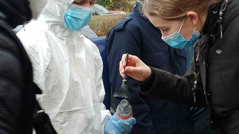 Am Mittwoch, dem 15.12.2021, besuchten zwei Kriminaltechniker des Landkreises Osnabrück das Seminarfach Forensik. Von 09:00-13:00 Uhr erhielten die Schüler und Schülerinnen Einblicke in den Werdegang dieses Berufes und durften anschließend mit Equipment ein präpariertes Auto nach Spuren absuchen und diese absichern. Zum Schluss wurden Bilder und alte Fälle präsentiert, wobei der Kurs die Möglichkeit bekommen hatte, auch eigene Fragen zu stellen.