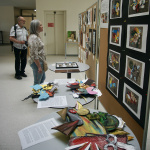 Nach einer Begrüßungsansprache des Kurses und der Lehrkraft konnten die zahlreich erschienenen BesucherInnen bei einem Rundgang in der Aula des Oberstufengebäudes die Ausstellungsstücke sowie die dazugehörigen Reflexionen betrachten. Denn nicht nur die Bilder, sondern auch Berichte des Kurses, Analysen und Skizzenbücher wurden präsentiert. Die einzelnen Werke, nach ihrem jeweiligen Stil in der Ausstellung angeordnet, waren einzigartig. Schilder und Reflexionen gaben Auskunft über die KünstlerIn, die Größe des Werkes, den Titel, das Material, die Intention und beinhalteten auch Analysen. Von Studien der Schädel und Skelette bis hin zu Filmplakaten war das vorgestellte Angebot divers. Neben Porträts und Klausurbildern wurden auch 3D-Montagen und Assemblagen präsentiert. Bei besonderem Interesse hatten die BesucherInnen zudem auch die Möglichkeit, mit den KünstlerInnen zu kommunizieren und eventuell auch Aufträge aufzugeben. Damit das alles in Ruhe besprochen werden konnte, standen Kuchen und Getränke bereit. Es gab Genuss für die Augen …und den Bauch.