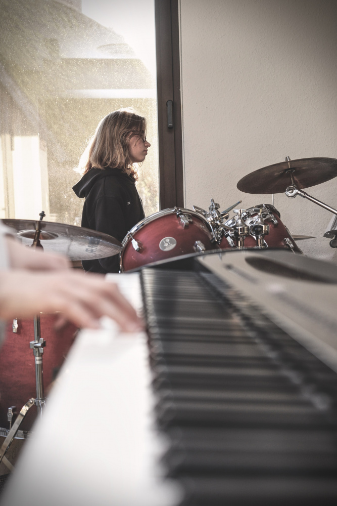 Endlich am Dümmer angekommen, wurde das eigens angemietete Haus in einen Probe-Raum umfunktioniert – selbstverständlich mit Sofa-Lounge zum Chillen, Quatschen und Spielen zwischen und abends nach den Proben. Nach einem ersten Soundcheck folgten intensive und produktive Proben. Um den Kopf frei zu bekommen und die Ohren etwas zu entlasten, waren kürzere Spaziergänge am Dümmer perfekt, auch wenn das Wetter etwas besser hätte sein können. Umso schöner und erfolgreicher waren die Probe-Sessions, die auf die nächsten Auftritte vorbereiten.