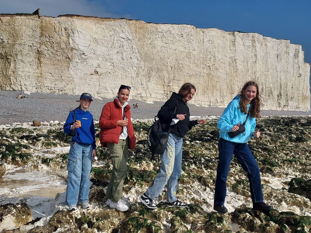 Der 3. Tag unseres Aufenthalts in England führte uns an die Südküste mit der sich dort befindenden zauberhaften Stadt Brighton. In Brighton trifft man, wenn man denn möchte, auf eine zauberhafte Altstadt mit schmalen und verwinkelten Gassen, in der es eine große Auswahl verschiedenster Geschäfte gibt. Von wertvollem und besonders teurem Schmuck bis zu seltenen und besonders alten Waffen (Zutritt erst ab 18.) kann man dort Geschäfte besuchen, die sicherlich nicht ganz alltäglich sind. Nach einem abschließenden Blick auf den Strand und das Meer bewegten wir uns im Bus und entlang der Küste Richtung Osten. Nach ca. 45 Minuten Busfahrt wurden wir am "Birling Gap" genannten Küstenabschnitt mit weiterhin grandiosem Wetter und einem atemberaubenden Anblick auf die sich lang dahinziehende Kreidefelsformation belohnt. Das alles lud uns unbedingt dazu ein, sich etwas am Strand aufzuhalten, die Meeresluft in uns aufzusaugen und sich auf das für Donnerstag geplante hektische Treiben in der Innenstadt von London vorzubereiten. So ging es nach diesen wundervollen Eindrücken von der Südküste wieder zurück in die Familien.