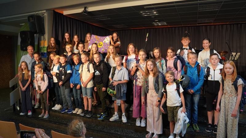 Schulleiterin Julia Wilcken durfte bei der Einschulungsfeier nach dem Schulanfangsgottesdienst am 18. August 95 Fünftklässler:innen neu in unsere Schulgemeinschaft aufnehmen. Die ersten Tage führten Frau Gehricke, Frau Lübbers, Herr Schröder und Herr Zurmühlen als neue Klassenleitungen 5 sie zusammen mit den Pat:innen durch das Gymnasium und ermöglichten so ein entspanntes Kennenlernen der neuen Lernumgebung und der Klassen.