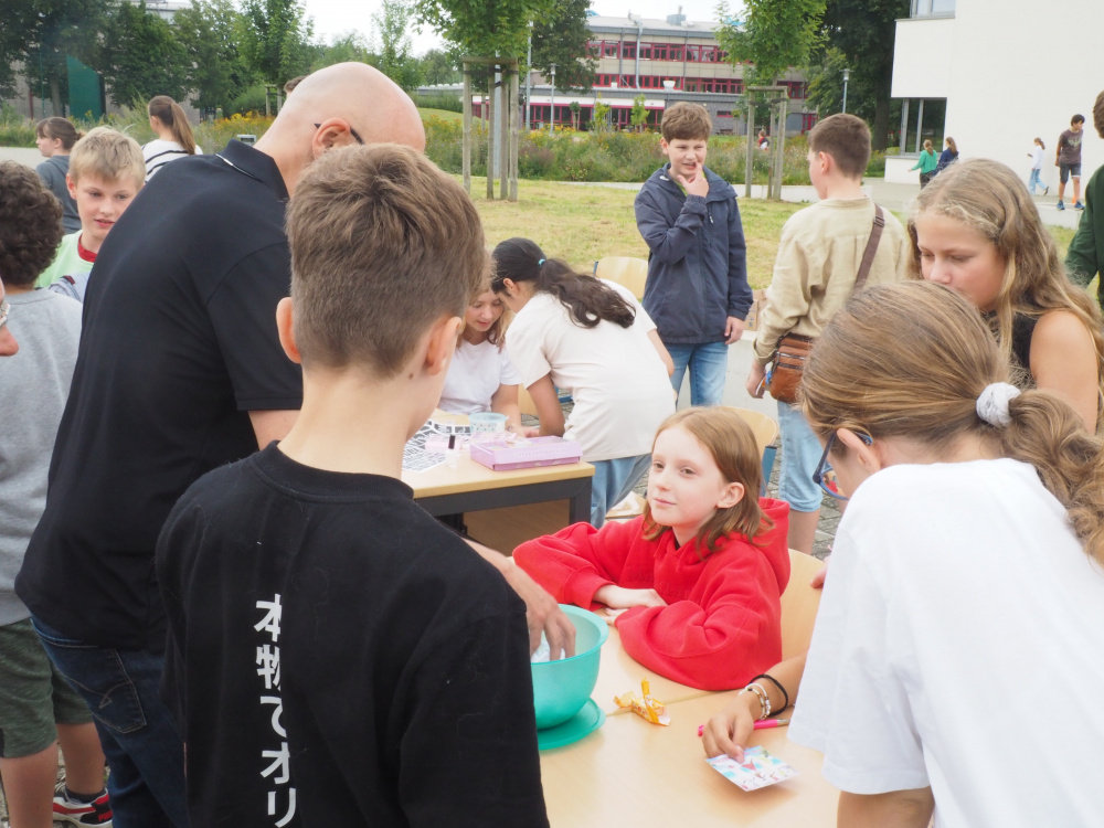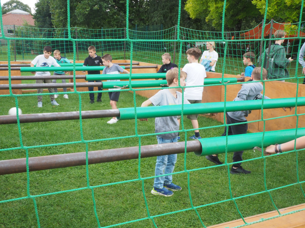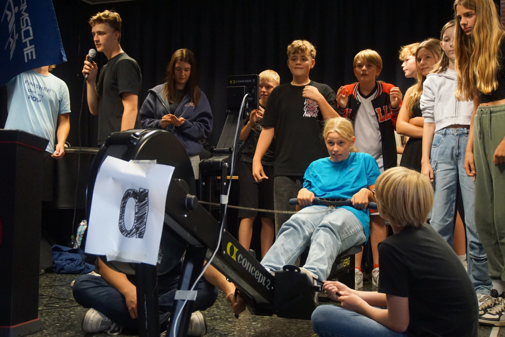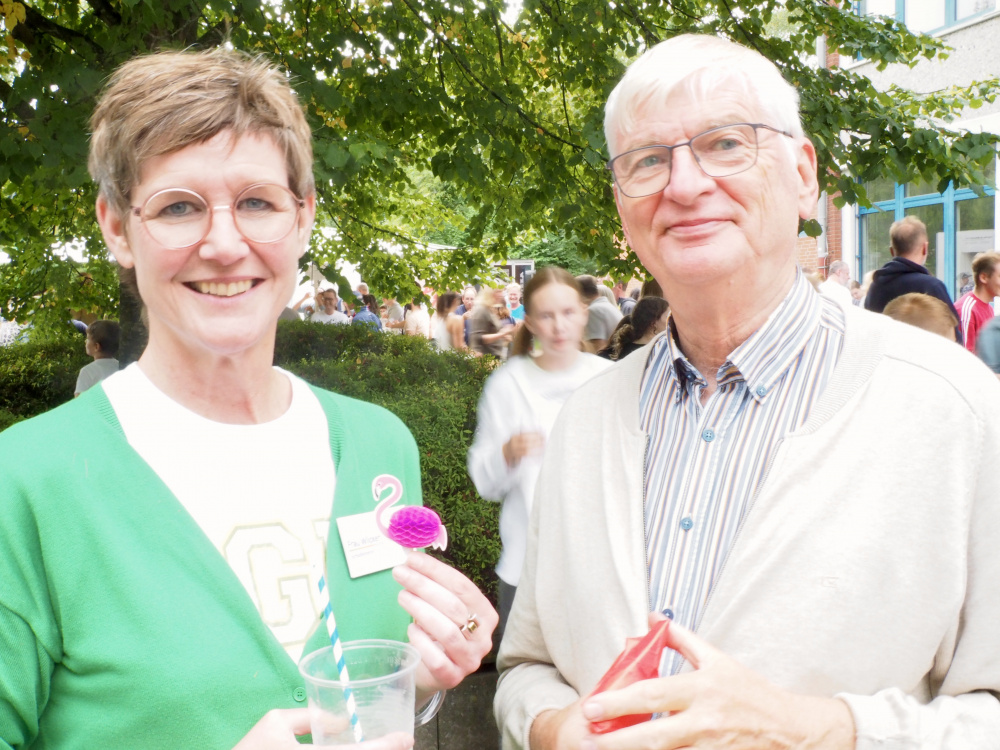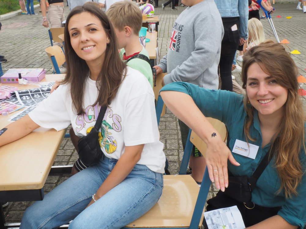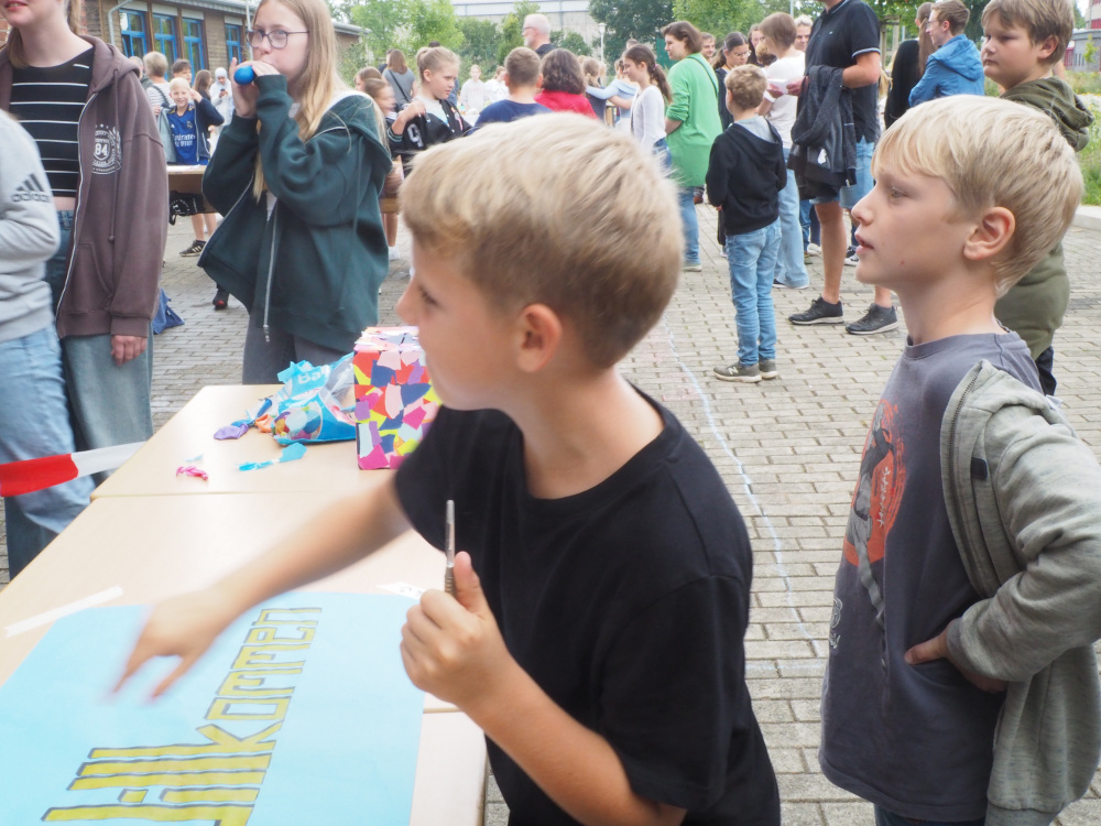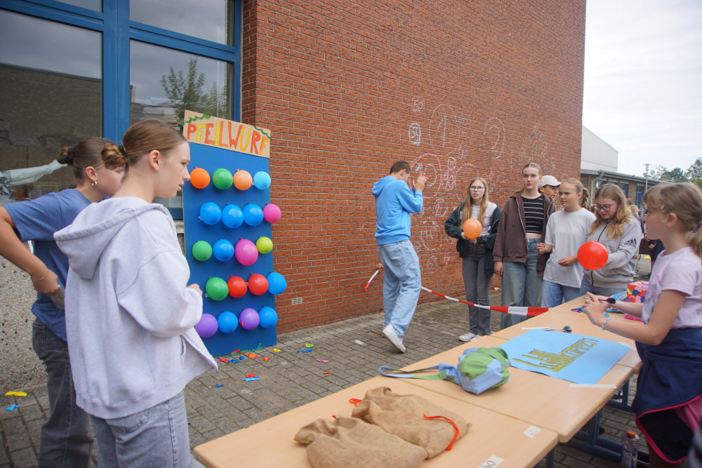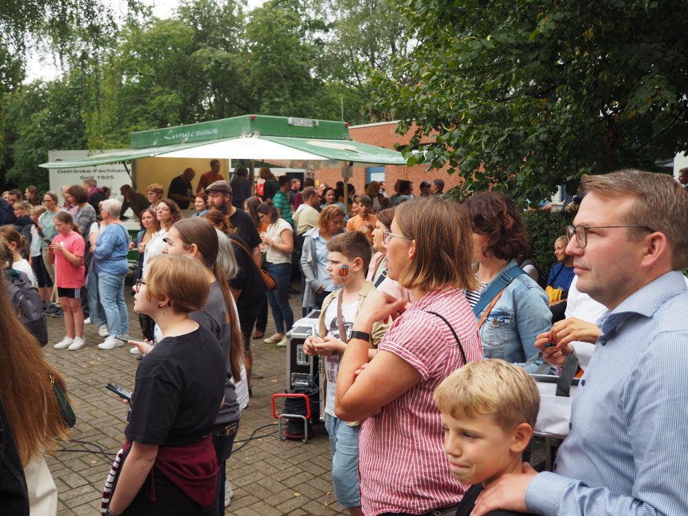 Mit großer Lust auf Begegnungen und Spaß an Sport und Spiel trafen sich am letzten Freitag im August viele aktuelle und ehemalige Mitglieder unserer Schulgemeinschaft zum ersten großen Sommerfest nach der Coronapause. Die Schulband „next generation“ unter der Leitung von Lutz Henschen sorgte gleich von Anfang an für gelöste Stimmung. Pfeil- und Ballonwurf, verschiedene Wasserspiele, Dosenwerfen, Fotobox, Fußball, Escape Room, Menschenkicker, Stelzenlauf, Zauberwürfelwettlösen, Tattoo- und Schmink-Studios, Los- und Schätzbuden, Stände der Eine-Welt-AG und der Beehive-AG u.v.m.: Bei für ein Schulfest optimalem Wetter war auf dem Schulhof für jede:n etwas dabei. Auch für das leibliche Wohl war im Überfluss gesorgt. Nur unsere Astronomen (Herr Riemers Truppe) waren nicht ganz so glücklich: Ein Wolkenvorhang senkte die Temperaturen angenehm, ließ eine Sonnenbeobachtung allerdings an dem Nachmittag nicht zu. Wie gut, dass bei der Generalprobe am Tag zuvor zumindest die vorbereitende Klasse 9b klare Sicht gehabt hatte. Einmal Polo und Radball ausprobieren? Am Stand des Bramscher Radsportvereins mit Beteiligung einiger Greselianerinnen war dies auf dem Sommerfest unkompliziert möglich. Zwischenzeitlich lockte ohrenbetäubender Lärm in die Aula. Dort ruderten die Jahrgänge 5-7 unter lautstarken Anfeuerungsrufen über 2000m ihre Siegerklassen (5b, 6b, 7c) aus. Wenn jemand dabei Spaß an dieser Sportart gefunden haben sollte: Unsere Ruderriege (Herr Denneberg und Steffen Steinmeyer) lädt bis zu den Herbstferien dienstags ab 14:45h interessierte Schüler:innen zum Schnupperrudern auf dem Kanal ein. Klangvoll wie am Anfang des Festes, so auch am Ende - zumindest theoretisch: Das eigentlich als Abschluss gedachte Rudelsingen zu den Klängen einer spontan gebildeten „Lehrerband“ (Herr Henschen, Herr Schmidt-Rhaesa, Herr Sieverding und Herr Otte) hob noch einmal die Stimmung, animierte zum Schunkeln und Tanzen, ließ aber nur den offiziellen Teil des Schulfestes enden. Danach ging’s weiter. Der Schulelternvertretung im Getränkewagen sei Dank!