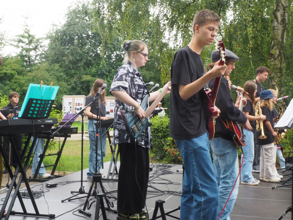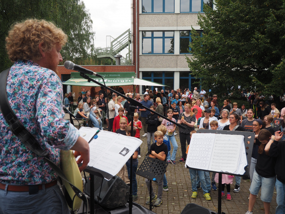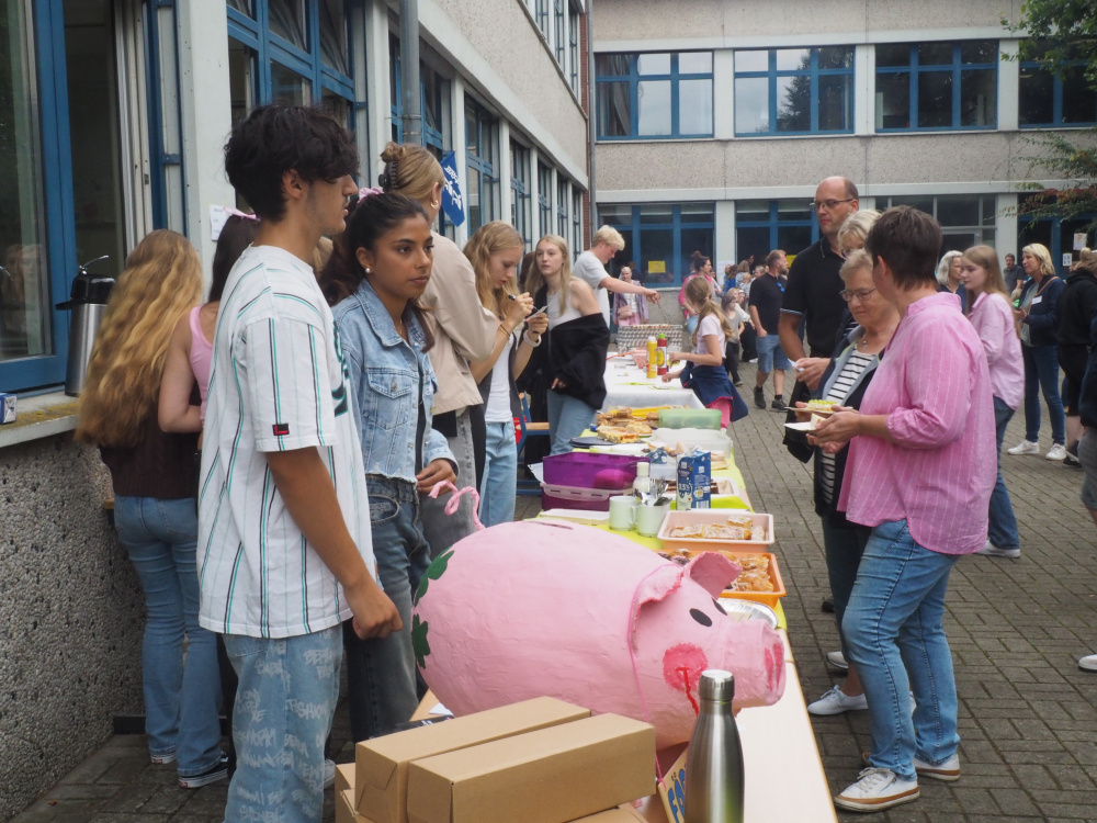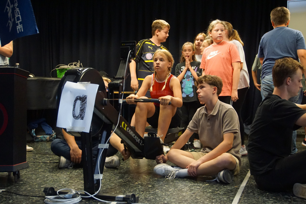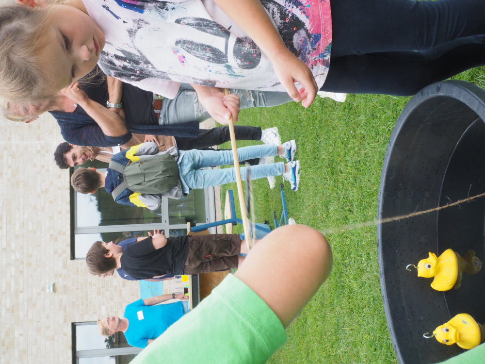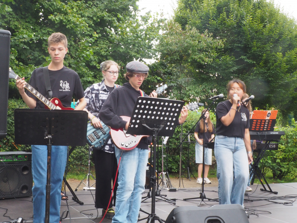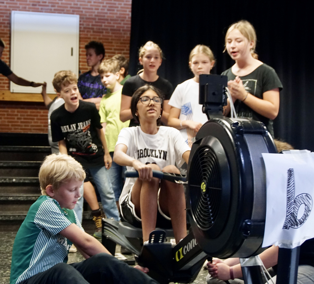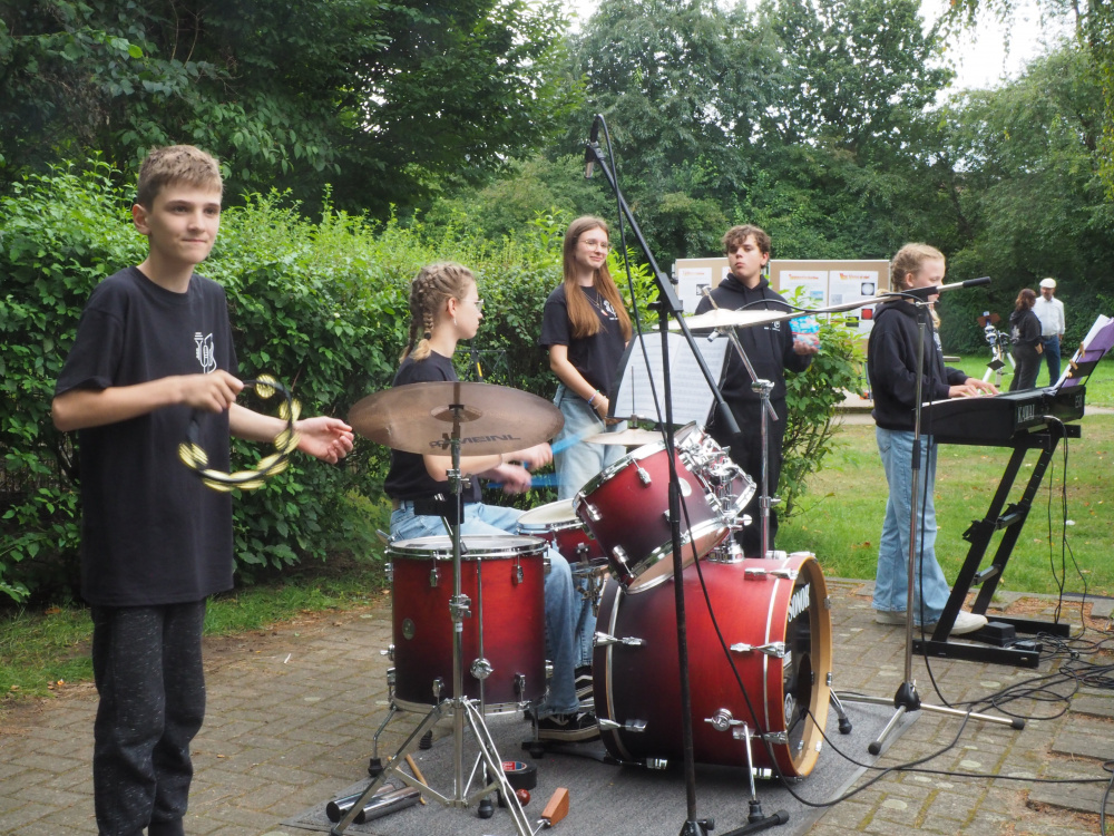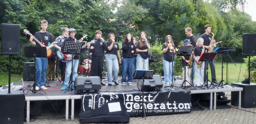 Mit großer Lust auf Begegnungen und Spaß an Sport und Spiel trafen sich am letzten Freitag im August viele aktuelle und ehemalige Mitglieder unserer Schulgemeinschaft zum ersten großen Sommerfest nach der Coronapause. Die Schulband „next generation“ unter der Leitung von Lutz Henschen sorgte gleich von Anfang an für gelöste Stimmung. Pfeil- und Ballonwurf, verschiedene Wasserspiele, Dosenwerfen, Fotobox, Fußball, Escape Room, Menschenkicker, Stelzenlauf, Zauberwürfelwettlösen, Tattoo- und Schmink-Studios, Los- und Schätzbuden, Stände der Eine-Welt-AG und der Beehive-AG u.v.m.: Bei für ein Schulfest optimalem Wetter war auf dem Schulhof für jede:n etwas dabei. Auch für das leibliche Wohl war im Überfluss gesorgt. Nur unsere Astronomen (Herr Riemers Truppe) waren nicht ganz so glücklich: Ein Wolkenvorhang senkte die Temperaturen angenehm, ließ eine Sonnenbeobachtung allerdings an dem Nachmittag nicht zu. Wie gut, dass bei der Generalprobe am Tag zuvor zumindest die vorbereitende Klasse 9b klare Sicht gehabt hatte. Einmal Polo und Radball ausprobieren? Am Stand des Bramscher Radsportvereins mit Beteiligung einiger Greselianerinnen war dies auf dem Sommerfest unkompliziert möglich. Zwischenzeitlich lockte ohrenbetäubender Lärm in die Aula. Dort ruderten die Jahrgänge 5-7 unter lautstarken Anfeuerungsrufen über 2000m ihre Siegerklassen (5b, 6b, 7c) aus. Wenn jemand dabei Spaß an dieser Sportart gefunden haben sollte: Unsere Ruderriege (Herr Denneberg und Steffen Steinmeyer) lädt bis zu den Herbstferien dienstags ab 14:45h interessierte Schüler:innen zum Schnupperrudern auf dem Kanal ein. Klangvoll wie am Anfang des Festes, so auch am Ende - zumindest theoretisch: Das eigentlich als Abschluss gedachte Rudelsingen zu den Klängen einer spontan gebildeten „Lehrerband“ (Herr Henschen, Herr Schmidt-Rhaesa, Herr Sieverding und Herr Otte) hob noch einmal die Stimmung, animierte zum Schunkeln und Tanzen, ließ aber nur den offiziellen Teil des Schulfestes enden. Danach ging’s weiter. Der Schulelternvertretung im Getränkewagen sei Dank!