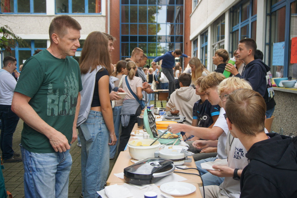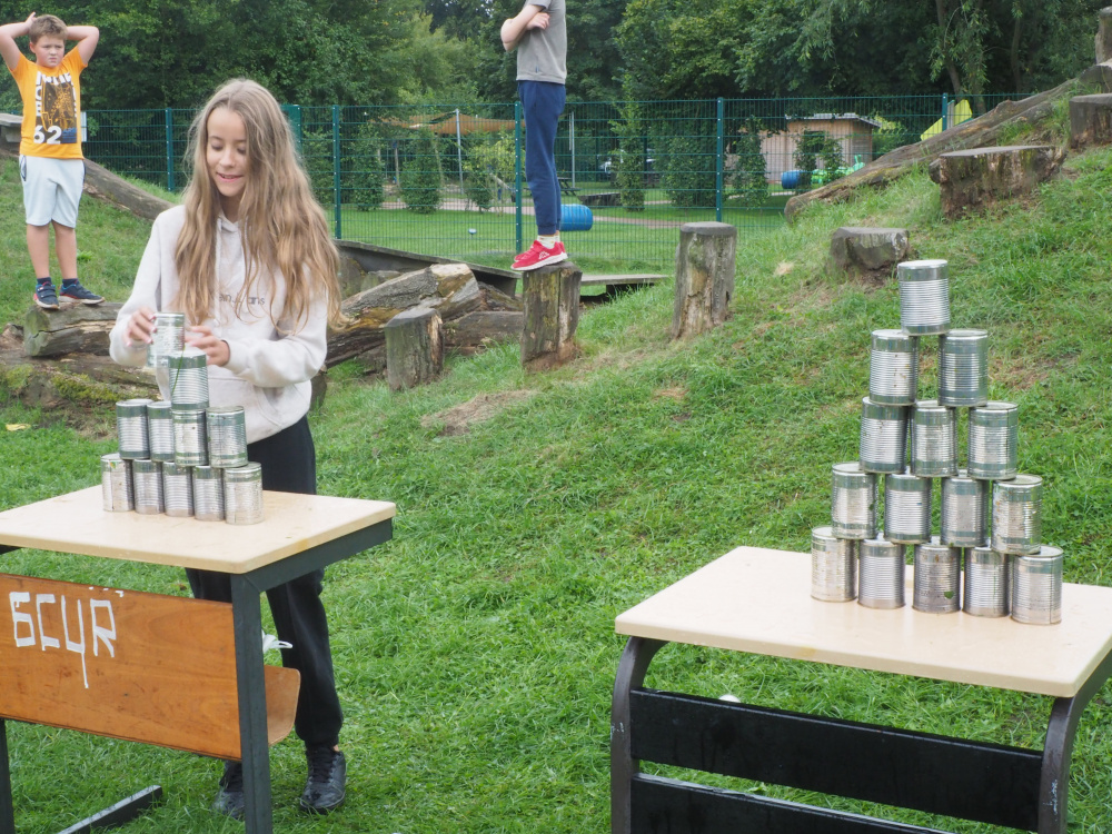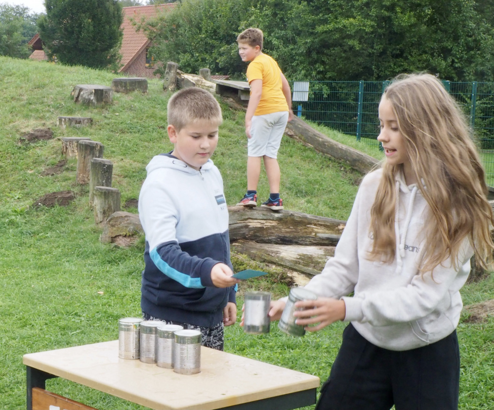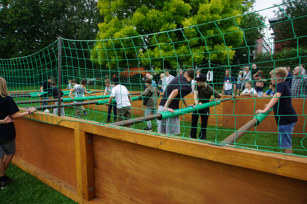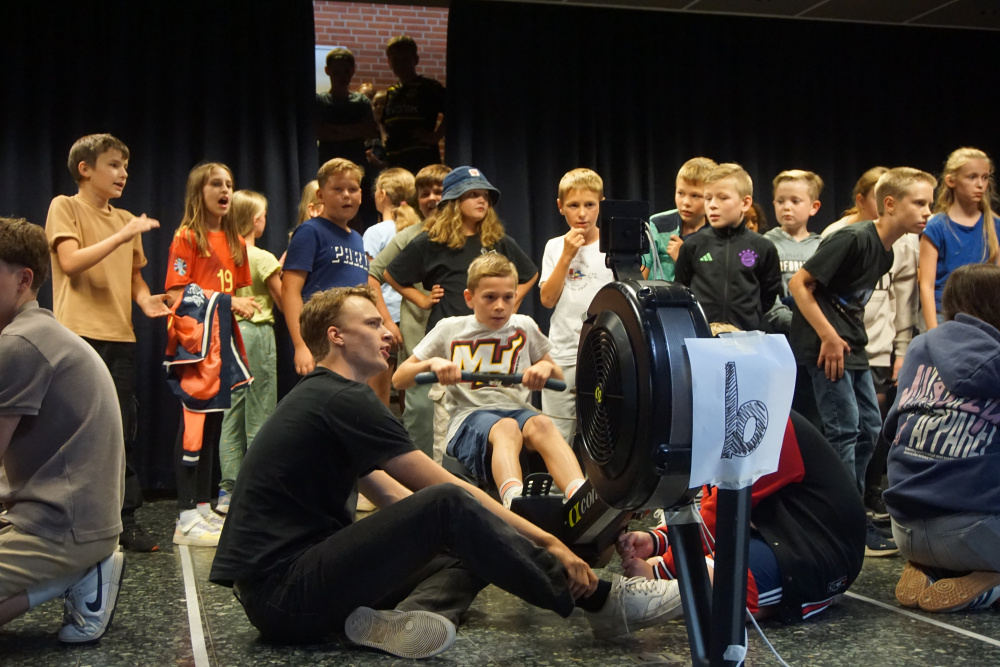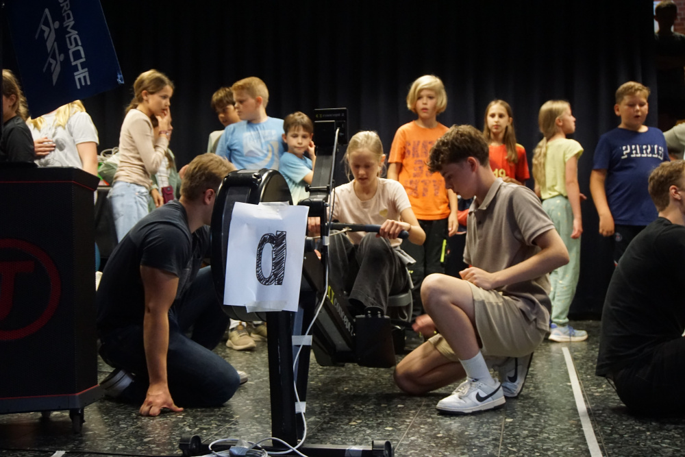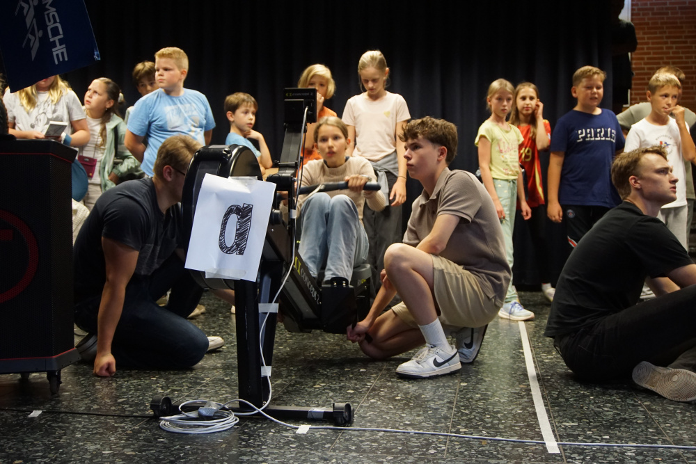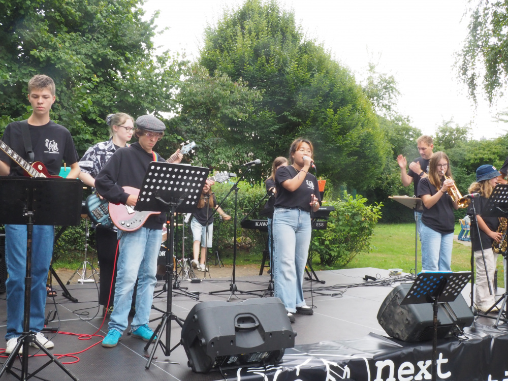 Mit großer Lust auf Begegnungen und Spaß an Sport und Spiel trafen sich am letzten Freitag im August viele aktuelle und ehemalige Mitglieder unserer Schulgemeinschaft zum ersten großen Sommerfest nach der Coronapause. Die Schulband „next generation“ unter der Leitung von Lutz Henschen sorgte gleich von Anfang an für gelöste Stimmung. Pfeil- und Ballonwurf, verschiedene Wasserspiele, Dosenwerfen, Fotobox, Fußball, Escape Room, Menschenkicker, Stelzenlauf, Zauberwürfelwettlösen, Tattoo- und Schmink-Studios, Los- und Schätzbuden, Stände der Eine-Welt-AG und der Beehive-AG u.v.m.: Bei für ein Schulfest optimalem Wetter war auf dem Schulhof für jede:n etwas dabei. Auch für das leibliche Wohl war im Überfluss gesorgt. Nur unsere Astronomen (Herr Riemers Truppe) waren nicht ganz so glücklich: Ein Wolkenvorhang senkte die Temperaturen angenehm, ließ eine Sonnenbeobachtung allerdings an dem Nachmittag nicht zu. Wie gut, dass bei der Generalprobe am Tag zuvor zumindest die vorbereitende Klasse 9b klare Sicht gehabt hatte. Einmal Polo und Radball ausprobieren? Am Stand des Bramscher Radsportvereins mit Beteiligung einiger Greselianerinnen war dies auf dem Sommerfest unkompliziert möglich. Zwischenzeitlich lockte ohrenbetäubender Lärm in die Aula. Dort ruderten die Jahrgänge 5-7 unter lautstarken Anfeuerungsrufen über 2000m ihre Siegerklassen (5b, 6b, 7c) aus. Wenn jemand dabei Spaß an dieser Sportart gefunden haben sollte: Unsere Ruderriege (Herr Denneberg und Steffen Steinmeyer) lädt bis zu den Herbstferien dienstags ab 14:45h interessierte Schüler:innen zum Schnupperrudern auf dem Kanal ein. Klangvoll wie am Anfang des Festes, so auch am Ende - zumindest theoretisch: Das eigentlich als Abschluss gedachte Rudelsingen zu den Klängen einer spontan gebildeten „Lehrerband“ (Herr Henschen, Herr Schmidt-Rhaesa, Herr Sieverding und Herr Otte) hob noch einmal die Stimmung, animierte zum Schunkeln und Tanzen, ließ aber nur den offiziellen Teil des Schulfestes enden. Danach ging’s weiter. Der Schulelternvertretung im Getränkewagen sei Dank!