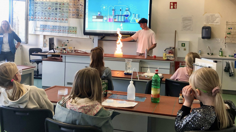 Zahlreiche Viertklässler:innen und ihre Eltern nutzen unseren Tag der offenen Schule, um vorbeizuschauen und einen Blick auf unser vielfältiges Angebot zu werfen. Während die Jüngsten mit den Guides aus Jg. 10 durchs Gymnasium streiften und die Mitmachangebote der einzelnen Fächer ausprobierten, ließen sich die Eltern durch die Schule führen. Schulleiterin Julia Wilcken und ihr Team informierten sie über unser schulisches Angebot, die Musiker:innen der next generation sorgten für den richtigen Sound.