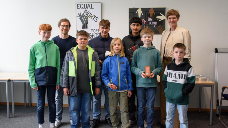 Die Frage ist gar nicht so einfach und nicht ganz klar zu beantworten. Da normalerweise die Färöer und Grönland nicht zur Staatsfläche Dänemarks gezählt werden, ist hier Österreich die richtige Antwort. Andernfalls wäre es natürlich umgekehrt. Ganz so kniffelig war es beim Diercke-Wissen-Wettbewerb 2025 aber nicht immer. Besonders bei den vollständig an der Juniorausgabe des Wettbewerbs teilnehmenden Jahrgängen 5-6 hatten die Klassensieger:innen hohe Punktzahlen. Albert Weiß, Jonas Rempel, Lian Fehler, Luis Zendel, Levi Stückemann, Johann Igel, Leif vor der Brüggen und Luuk Mosel bekamen für die tolle Leistung fair gehandelte Bramscher Schokolade aus dem Weltladen überreicht.