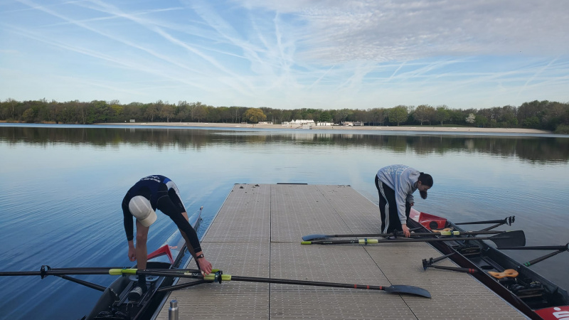 Um sich auf die anstehenden Wettkampfsaison ideal vorbereiten zu können, fuhren unsere Ruder:innen direkt nach den Osterferien ins Trainingslager an den Otto-Maigler-See in Hürth. Vor Ort angekommen wurden die 15 Ruder:innen direkt von blauem Himmel und strahlendem Sonnenschein begrüßt. Nachdem die Boote abgeladen und aufgeriggert worden waren, ging es für alle direkt ans Gewässer zur Erkundungsfahrt. Nach einigen Runden auf dem etwa 2 km langen See schmeckte das Abendessen.